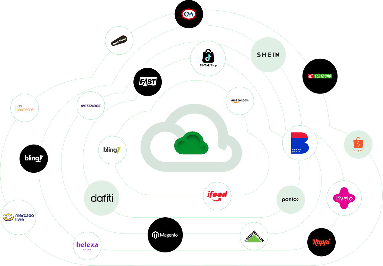 Tenha conexão nativa com o hub de integração que oferece mais de 70 marketplaces.